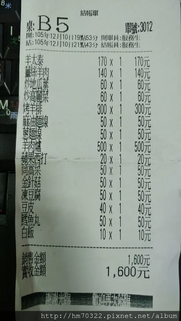 四個人用餐平均一人$400,以羊肉爐的價錢來說算是中等價錢