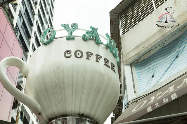 Oyami Caf'e位在宅巷內,抬頭看上二樓處會發現一個大咖啡杯。 再往前往走,就會看到告示牌。就可以抵達Oyami Caf'e,