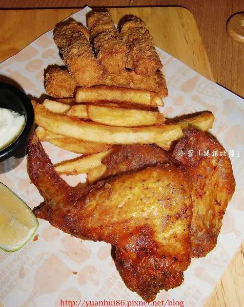 雞翅、薯條、魚條的外層吃起來的口感酥脆不油膩 ,