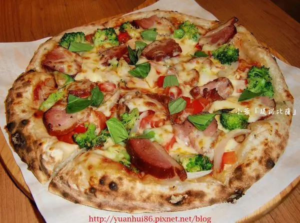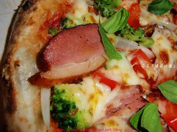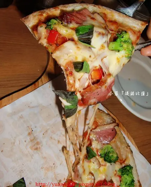 餡料除了鴨肉片之外也有一些蔬菜 , 讓比薩的口感多了些清爽的FU~