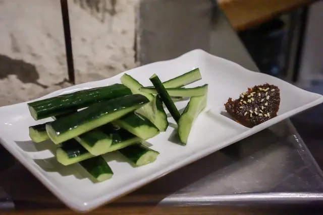 小黃瓜很新鮮就像龍貓裡面那個老奶奶從清澈水裡撈起小黃瓜給小梅吃一樣令人感到翠綠清甜,配上店家自製味噌醬,把雞肉炒至變成糊狀,還有紅白味噌醬調味,沾著小黃瓜吃,增加口感與層次,我很喜歡這味序曲,為接下來的餐點帶來漂亮的開場。