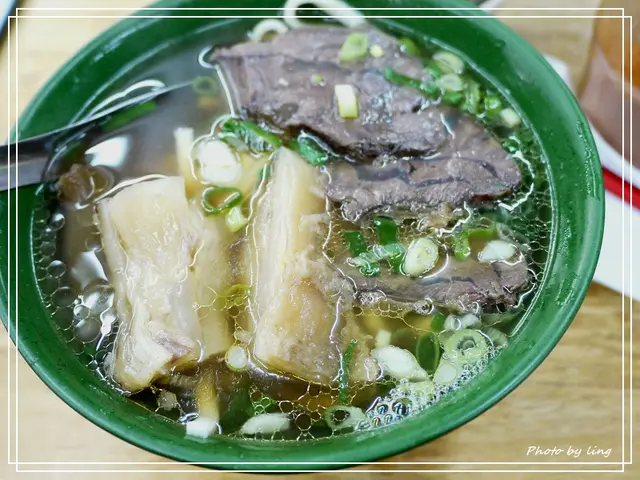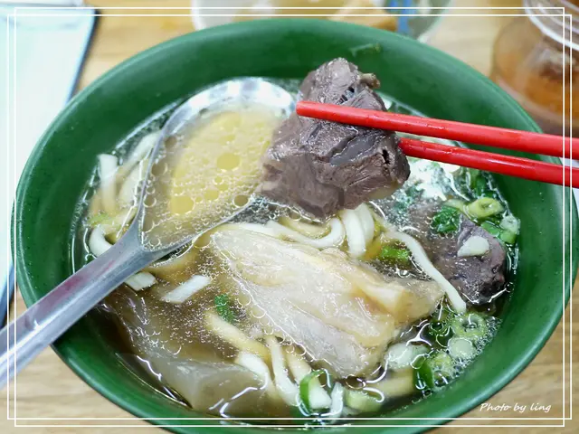 算算牛肉有四大塊,店家使用部位是腱子肉,處理的算是軟嫩中帶有嚼勁的口感。湯頭也是我愛的,沒有多餘的調味,清爽的牛肉湯頭中帶有淡淡的中藥香。這湯頭我超推~(據說以往湯頭可無限續,但現在續湯僅限一次唷!!)