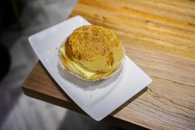 50元一顆在信義區百貨公司裡算是cp值高,剛上桌時是熱的,不過因為拍照,所以我吃的時候已經變冷了,原本以為菠蘿麵包是扎實的,不過卻意外的蓬鬆且不礙口然後表層那一層酥皮很脆,配著中間那塊奶油吃,可能我不怕吃奶油,所以我自己蠻喜歡這一顆菠蘿油的。