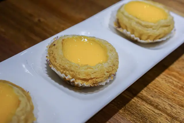 三顆一百實在不貴,這是檀島餐廳必點的經典品項,我看每一桌上都有這組合,我在澳門吃過真正的蛋撻,口感較為濕潤且太扎實,不過台灣的檀島反而沒有這口感,外層非常酥脆咬下去還會卡滋的一聲,內餡則是沒有蛋腥味,甜度上也適中,不過我個人愛菠蘿油比較多一點。