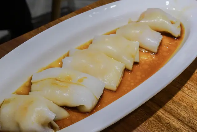 我以前一直以為腸粉是內臟,到吃到真正的腸粉才知道原來是板條『誤』,港式料裡除了燒賣,燒臘之外,再來就是帶有滑滑口感的腸粉了,這一份鮮蝦腸粉,皮薄鮮蝦鮮甜彈牙,搭配爽口醬汁,一點都不會有負擔。