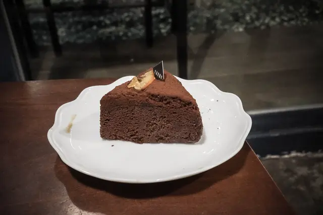 我超喜歡這一份甜點,法芙娜巧克力的苦甜配上蛋糕柔軟,意外的很合拍而且我原本也以為這可能是磅蛋糕,結果不是喔,吃起來像戚風蛋糕但又不像,綿綿的但又帶點彈性,難得有巧克力蛋糕是讓我很稱讚的。