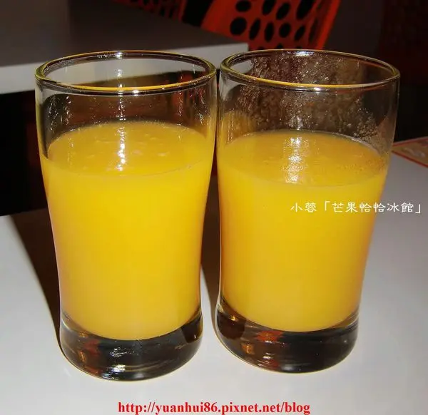 店家招待的芒果汁 , 口感不會太甜也喝得到芒果的自然果香味~