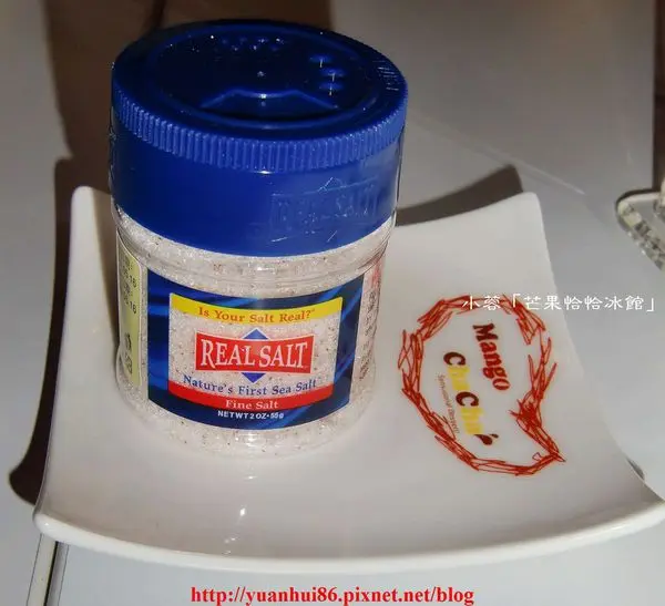 店家提供了海鹽可以灑在芒果上一起吃有提味的效果,