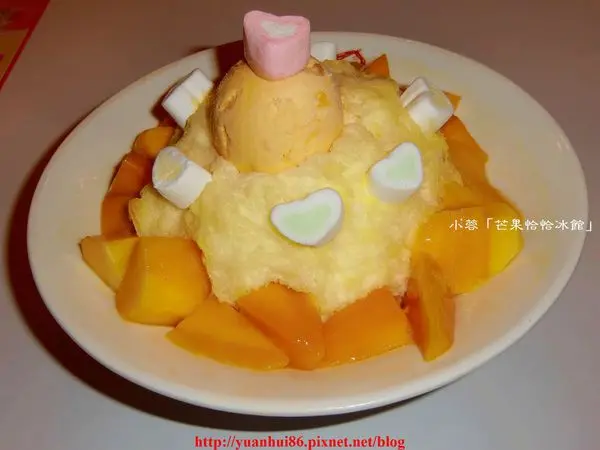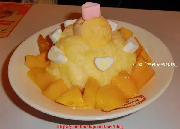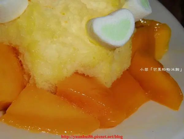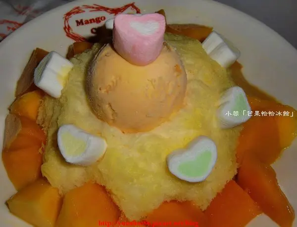 中間的雪花冰綿密細緻入口即化 , 味道甜而不膩