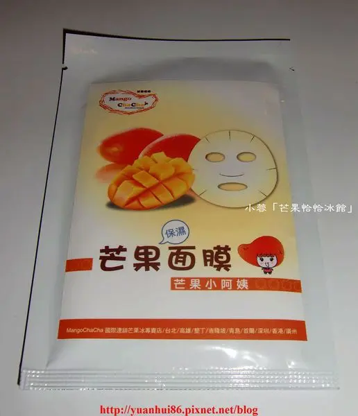還有一片使用芒果皮萃取精華以及玻尿酸製成的面膜,