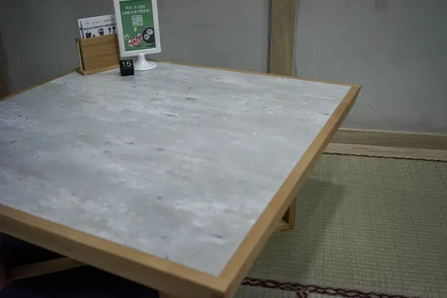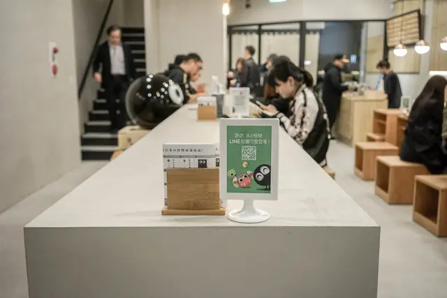 一樓的用餐空間與二樓不同,大面積的泥作桌面實在太適合拍照,然後桌上有路地 氷の怪物的限定貼圖,掃瞄QR碼就能獲得喔。