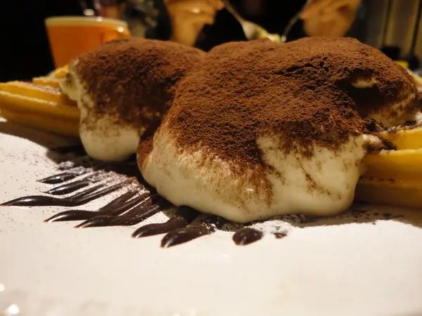 吉拿棒熱熱脆脆的,沾到提拉米蘇變得比較軟一點點,但影響口感不大。