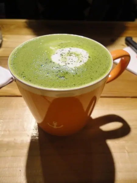 上頭的抹茶粉超濃,喝一口就搭配底下的牛奶~