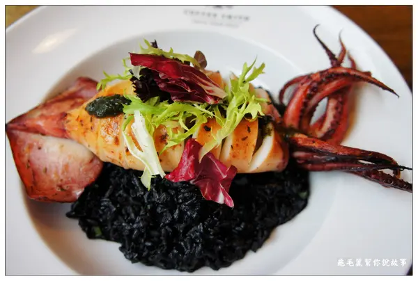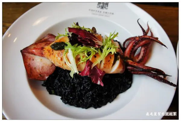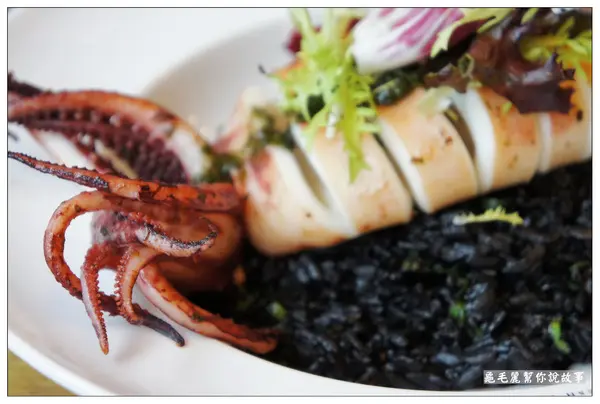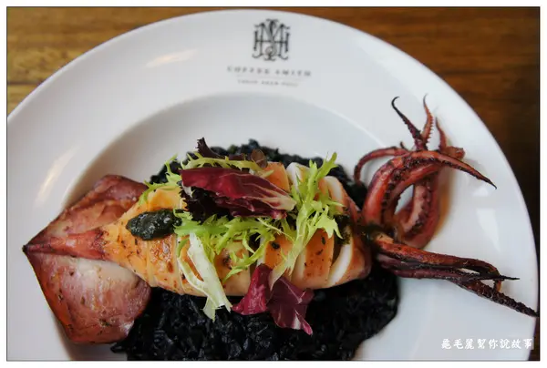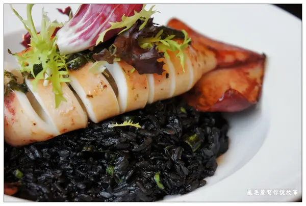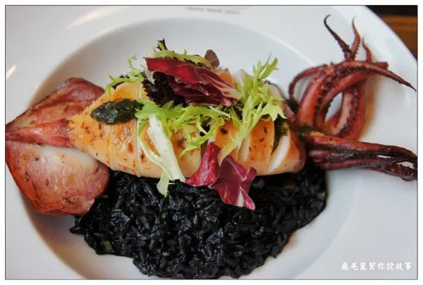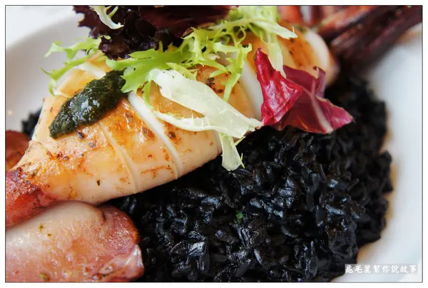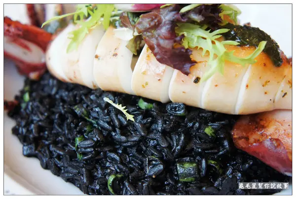 這墨魚燉飯,簡直就是黯然銷魂飯!每粒米粒,都被墨魚汁包覆,透露出黑亮的光澤。
