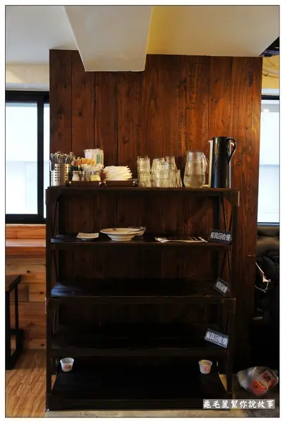 去年七月底才開始試賣,讓我非常意外,一家如此新的店,居然可以這麼成熟?!從菜單、餐點、到用餐環境,都讓人感覺舒服。服務人員再忙,還是面帶微笑,我相信這跟劉店長的領導方式有關,因為她就是以身作則,隨時見到她,都是笑嘻嘻。 餐具、檸檬飲用水等…都在架上自取;用餐完畢,餐盤也送至該處回收。