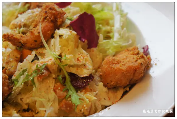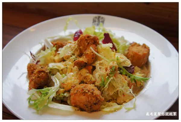 這一盤生菜份量十足,新鮮脆口,拌上醬汁、起司粉、辣椒粉一整個清爽開胃。