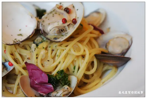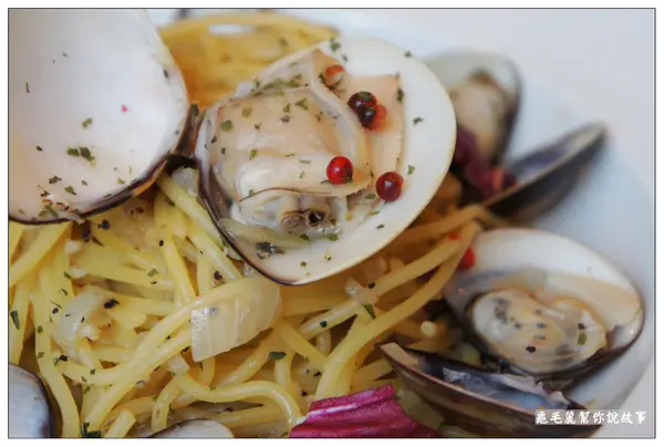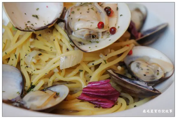 裡面有加上蒜頭、洋蔥和九層塔一起拌炒,跟義大利麵非常的合拍,讓人一口接一口的直往嘴裡送,真的超順口!