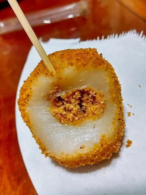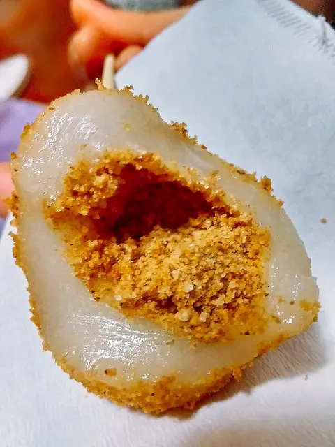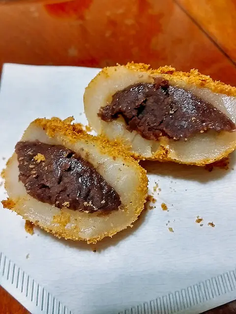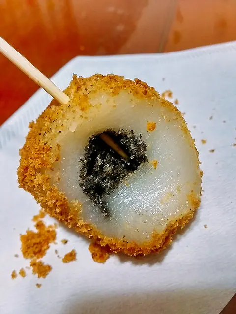 麻糬口感真的很Q,比起一般軟Q麻糬,他們家算扎實偏硬,千萬千萬要嚼久一點