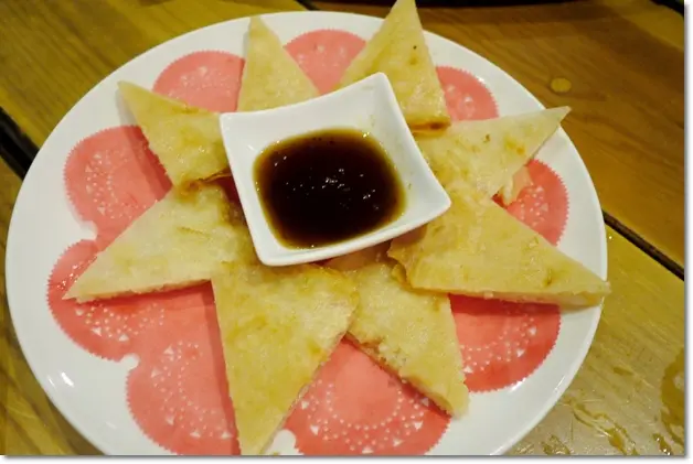 視覺上略顯油膩的月亮蝦餅,實際上吃起來意外的不油,且小碟裡的特製沾醬超好吃~真是驚訝