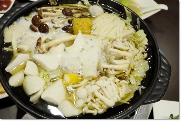 另外滿滿的配料有菇類、火鍋料以及另外放的牛肉片,以及可免費續湯,讓C/P值高很多