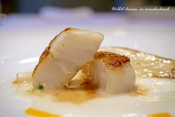 干貝煎到表面金黃微焦,內層卻是還沒有很熟的軟嫩鮮甜