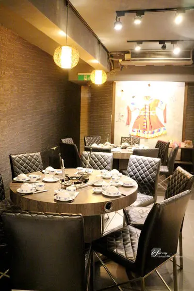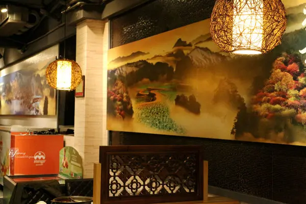 昏黃的燈光與牆上的畫作,營造出時尚的中國東方風味。