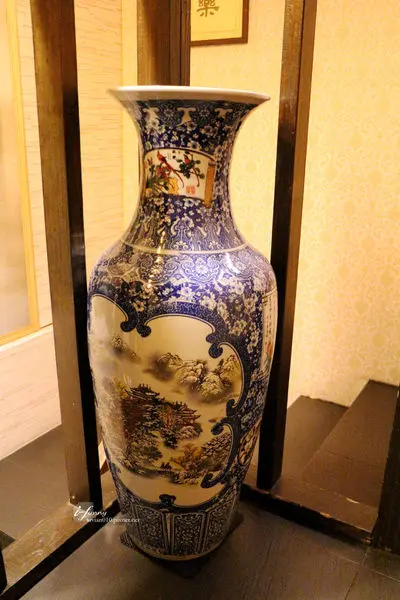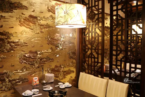 以中國風的格柵、金黃色的畫作,勾勒出富麗堂皇的用餐環境。