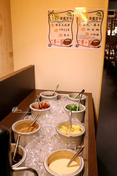 醬料區很講究地以冰塊冰鎮著所有的醬料。