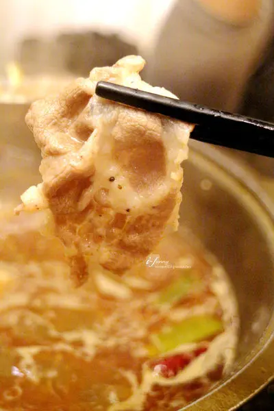 將稀有的匈牙利國寶曼加利札豬肉片,在甘醇順口的麻辣湯底涮過,更顯鮮甜肉汁。