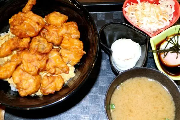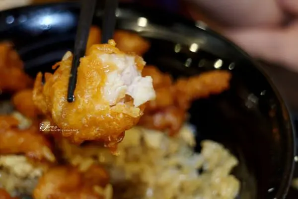 這道是MOMO強力推薦的炸雞丼,她覺得新丼的炸雞跟一般炸雞不太一樣但很好吃。