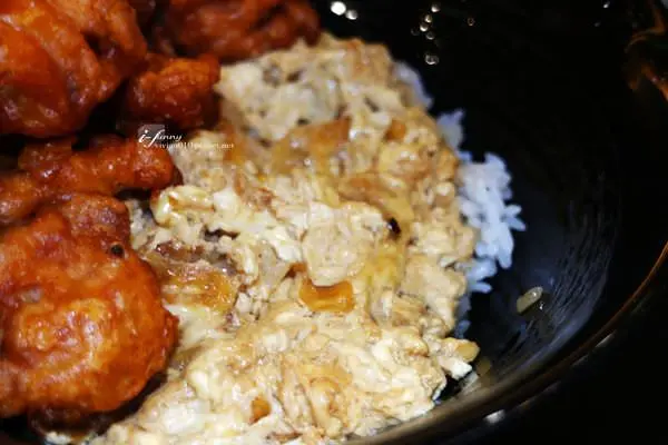 把親子丼的煮雞肉換成了炸雞塊,但還是名符其實的親子丼欸,好酷喔!