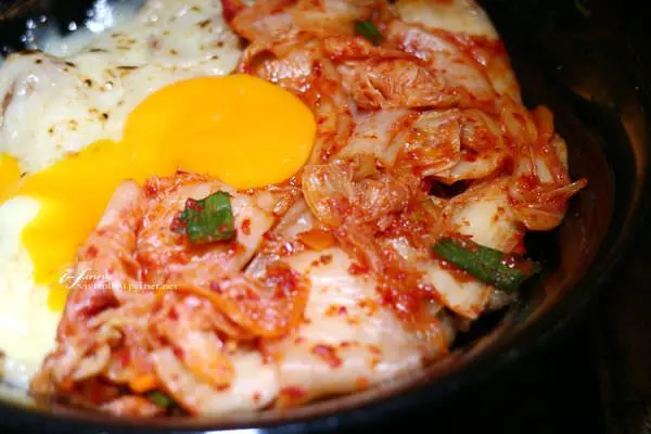 新丼的韓式泡菜酸辣夠味,泡菜輕脆有口感,一口起司一口泡菜真的有解膩效果呢!