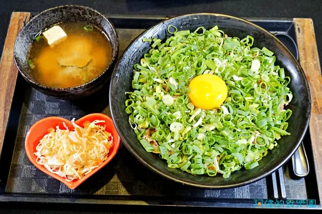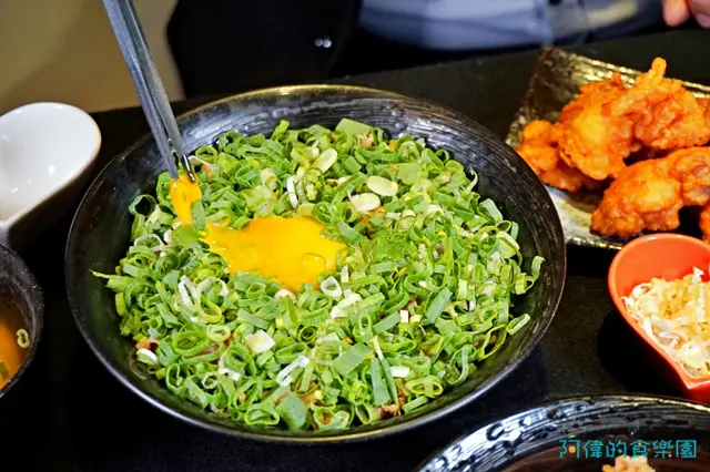 看著滿滿的青蔥中間一顆生蛋黃,顏色的搭配就很舒服。