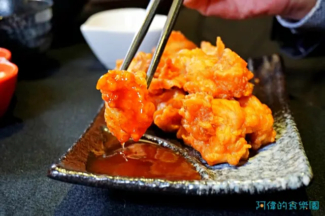 盤上附的糖醋醬也讓人驚喜,將炸雞沾一點之後變得更好吃,因為阿偉我一直對糖醋醬蠻喜歡的,所以這樣炸雞的味道多了一種”料理”感,配著丼飯吃有種澎湃感。
