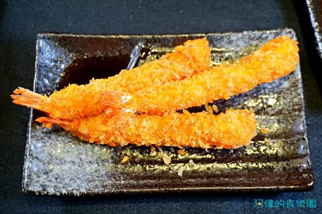 三隻碩大的炸蝦,會發現其實它的麵衣不厚,一咬下去香甜的蝦肉在口中迸發,與酥脆的麵衣相得益彰。