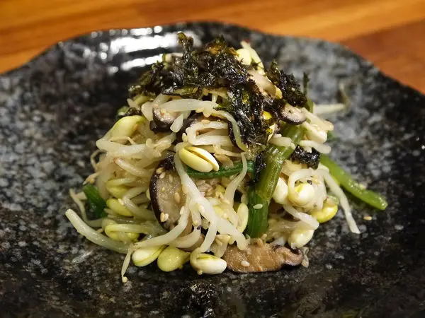 爽脆的黃豆芽配上菠菜、香菇、海苔什麼的