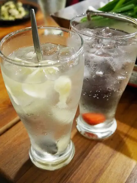 分別是照片中的「生紅薑沙瓦(150元)」和「梅干沙瓦(110元)」