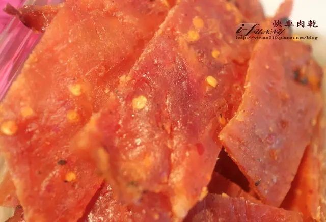 這比較像一般傳統肉乾的厚度,有著檸檬的清香味,加上麻麻辣辣的感覺,一入口後艾方妮腦海出現的是泰菜中的酸辣蝦, 但酸味並不明顯,辣度也是在可以接受的範圍;肉乾口感頗有嚼勁,不會太硬,辣度會經由多次咀嚼後增加,但卻是舒服的辣,更是會令人一口接一口的上癮的辣,這個創新的口味真的挺不錯的!