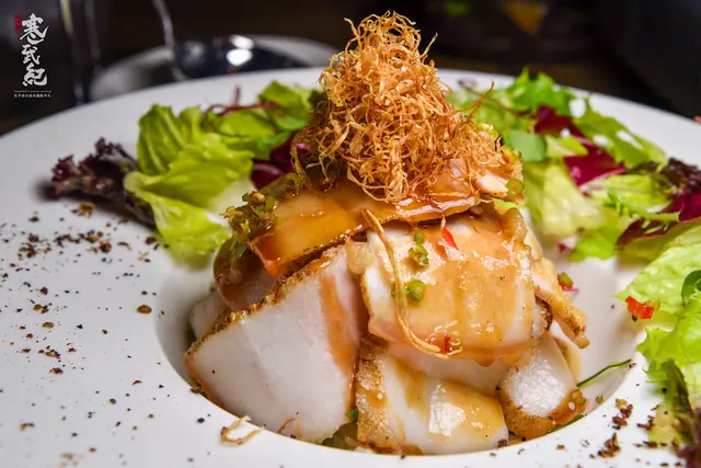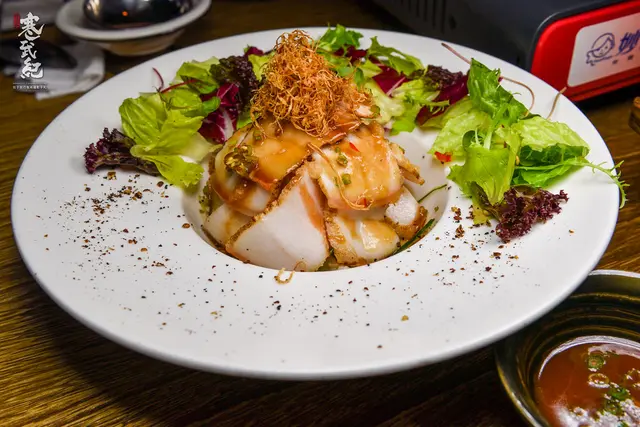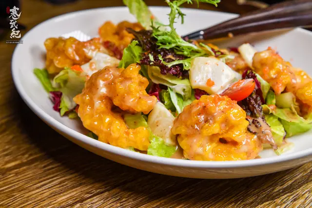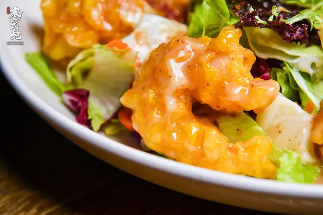 經典的台菜蝦球,尺寸頗肥,吃起來口感相當不錯!新鮮草蝦,淋上些許芝麻醬,搭配類似西餐風味的生菜沙拉吃起來很爽口!