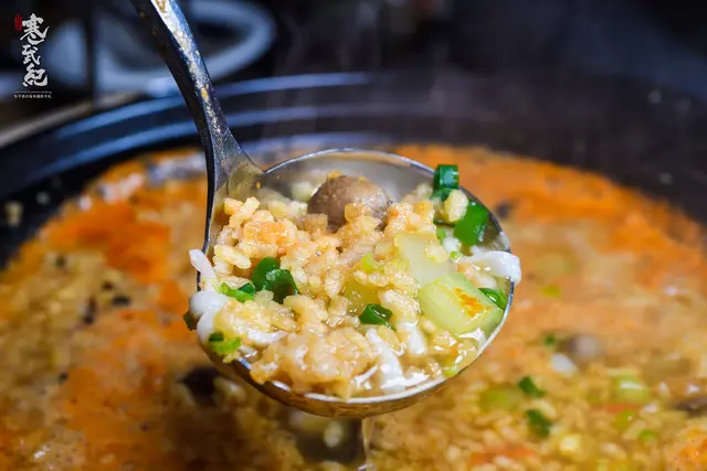 依自己喜歡的軟硬度決定炸米香要泡在湯中多久,完全是超好吃的一道鹹粥,料多味美,無敵推!超好吃~~