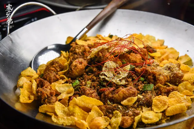 第一次吃到如此好吃的炸鳳爪,炸過去過的鳳爪再用鹹辣的醬爆作法,吃起來醬香非常迷人,雞爪又脆又入味,超推!