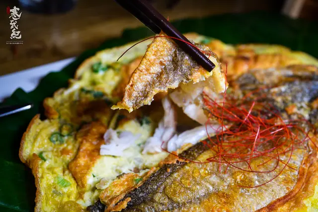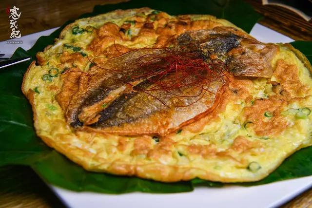 一整尾黃魚去骨製成的烘蛋,霸氣十足!能同時吃到煎魚和煎蛋的獨創料理,濃郁蛋香、蔥油香搭配魚鮮,真心不錯吃!