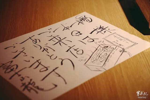 暖男老闆真的超級無敵給它用心!只要有來電訂位並且告知大名,老闆都會親自書寫一張圖文並茂的歡迎卡片送給人客,包子爸看到這張的同時都快要感動到噴淚了.........