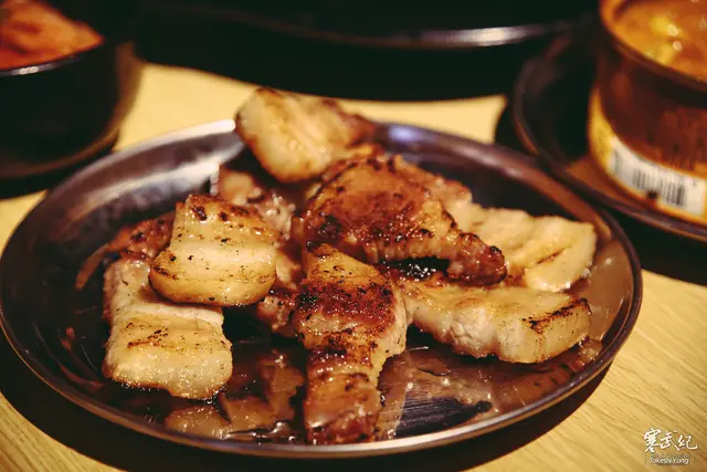 厚切豬五花:豬五花烤的軟嫩適中 ,服務員會幫你切成好入口的大小 ,再搭配著生菜 ,或是蘿蔔片 ,韓式泡菜 ,豆芽 ,任何吃法都別有一番風味