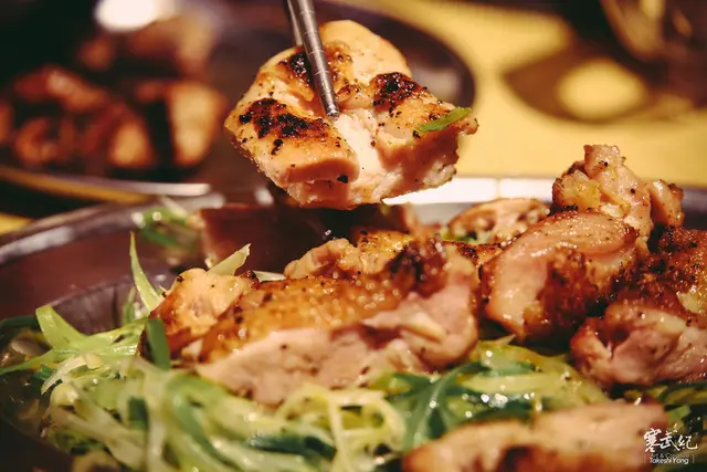 巨大雞腿排:真的份量很大的雞腿排經過烘烤,搭配鮮甜的蔥絲混麻油,烤過的脆皮軟嫩雞肉與麻油蔥絲一起,完全不用再增加其他配料,簡單的組合,互相陪襯出對方最可口的一面 !