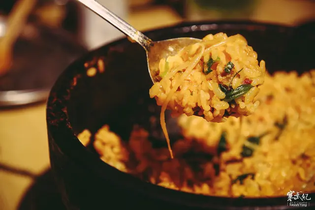 吃韓式石鍋拌飯的訣竅就是千萬不能猴急,靜置數分鐘後米飯就能產生極度焦脆的鍋巴,口感一流!