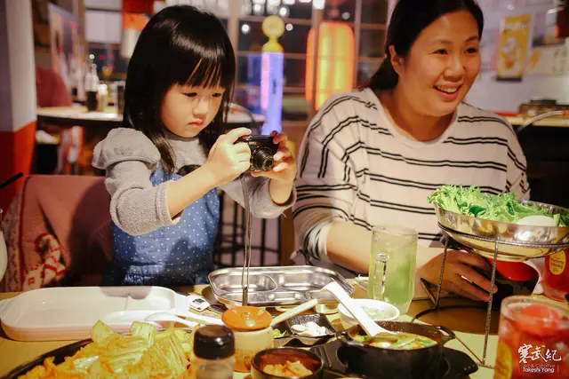 有其父必有其女~~~小包子看到食物上桌也搶著先餵飽相機~~哈哈!