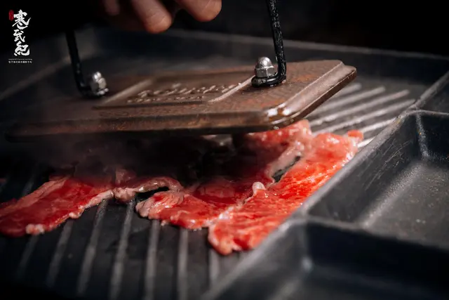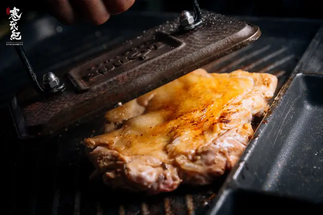 店家特別設計的「壓肉器」,能在烤肉的時候將肉緊緊的壓住,緊貼烤盤,讓烤肉均勻受熱。