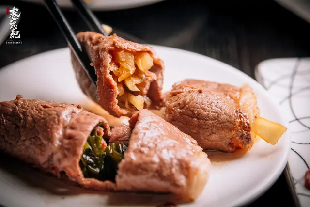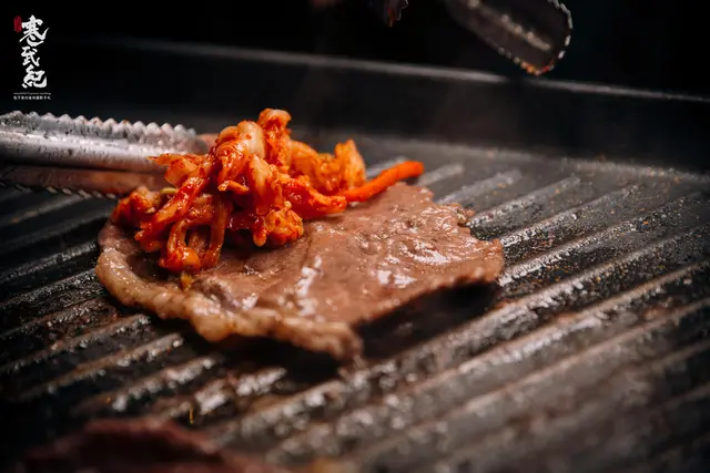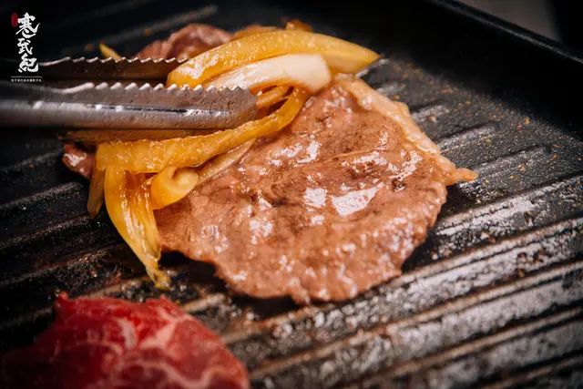 在煎烤牛肉的同時中間打入一顆蛋,視覺效果十足。