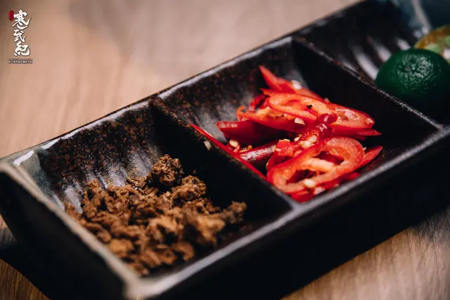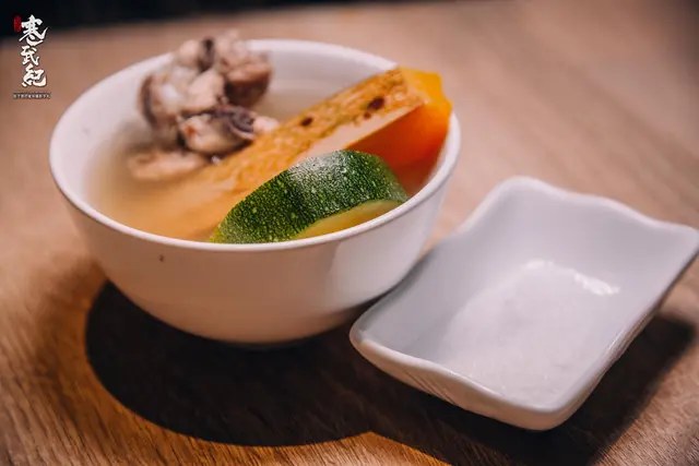 對了,老闆還拿來了一碟鹽,老闆這一鍋椰子雞完全沒有加一絲鹽,卻有著很自然的鹹味,若是喜歡喝重口味湯頭的朋友,可以自己添加一些鹽。
